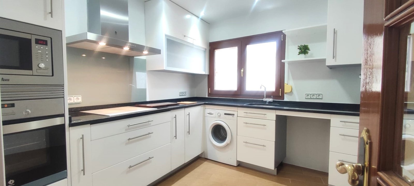 Los suelos de madera y las ventanas de PVC imitación madera aportan calidez y eficiencia, mientras que las balconadas llenan las estancias de luz natural y permiten disfrutar de las vistas al entorno histórico del municipio.